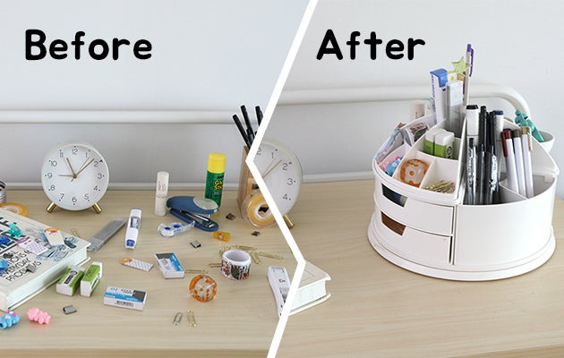 どんなお家でもある、多くの文具品をすっきりまとめて整理できます。