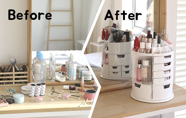 散らかりがちで、使いたいものが見つけにくい化粧品の整理に