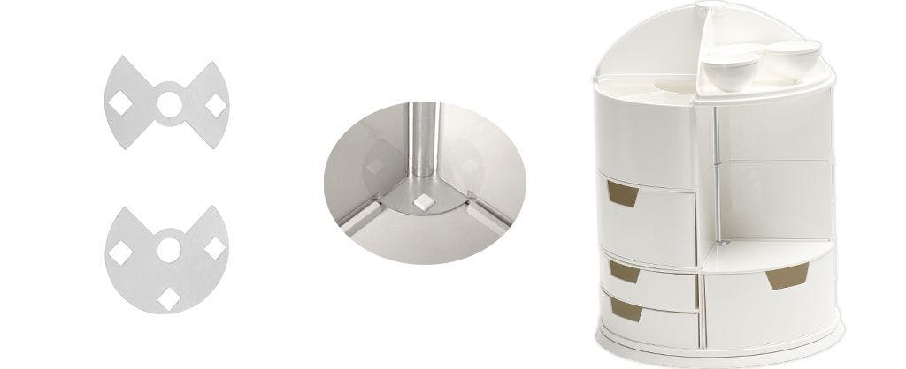 二重に設計されたベアリング構造でスムーズに回転して、重いものを収納しても傾かず、支えてくれます
