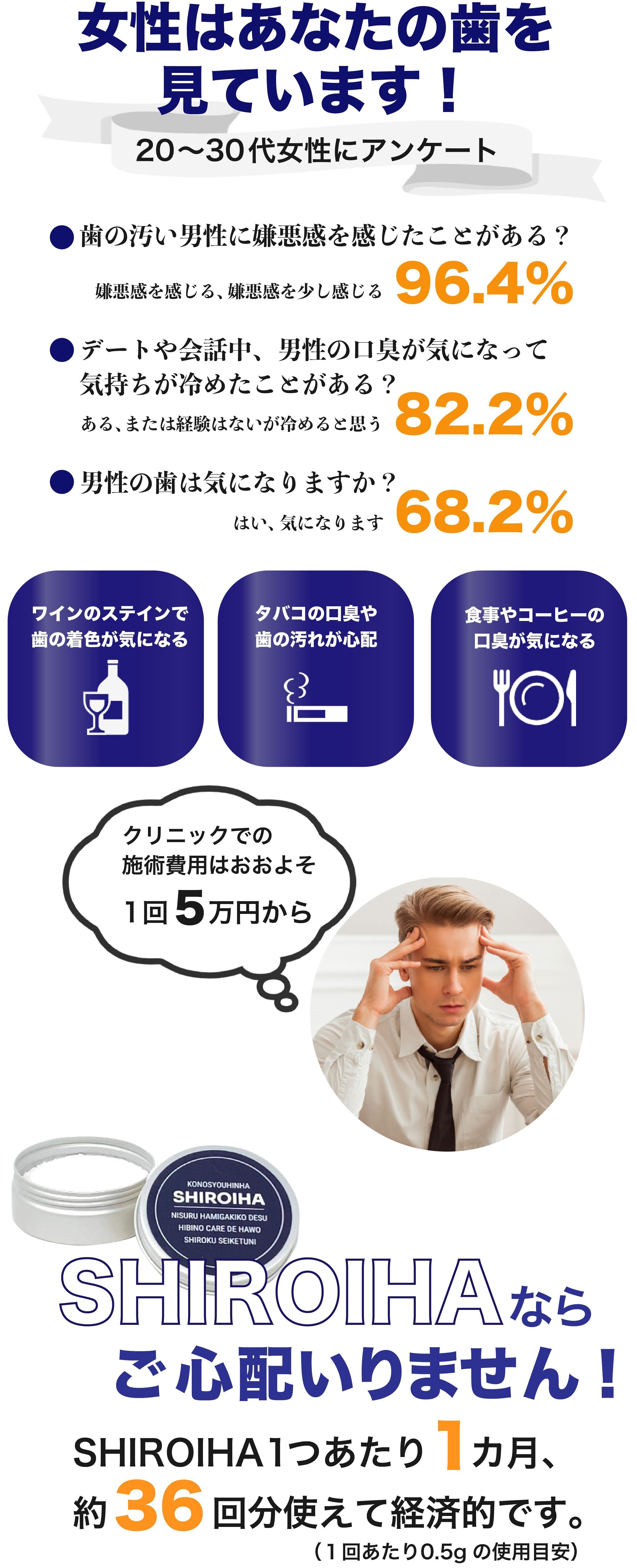 また、歯の黄ばみや口臭に悩む男性もいるのではないか?