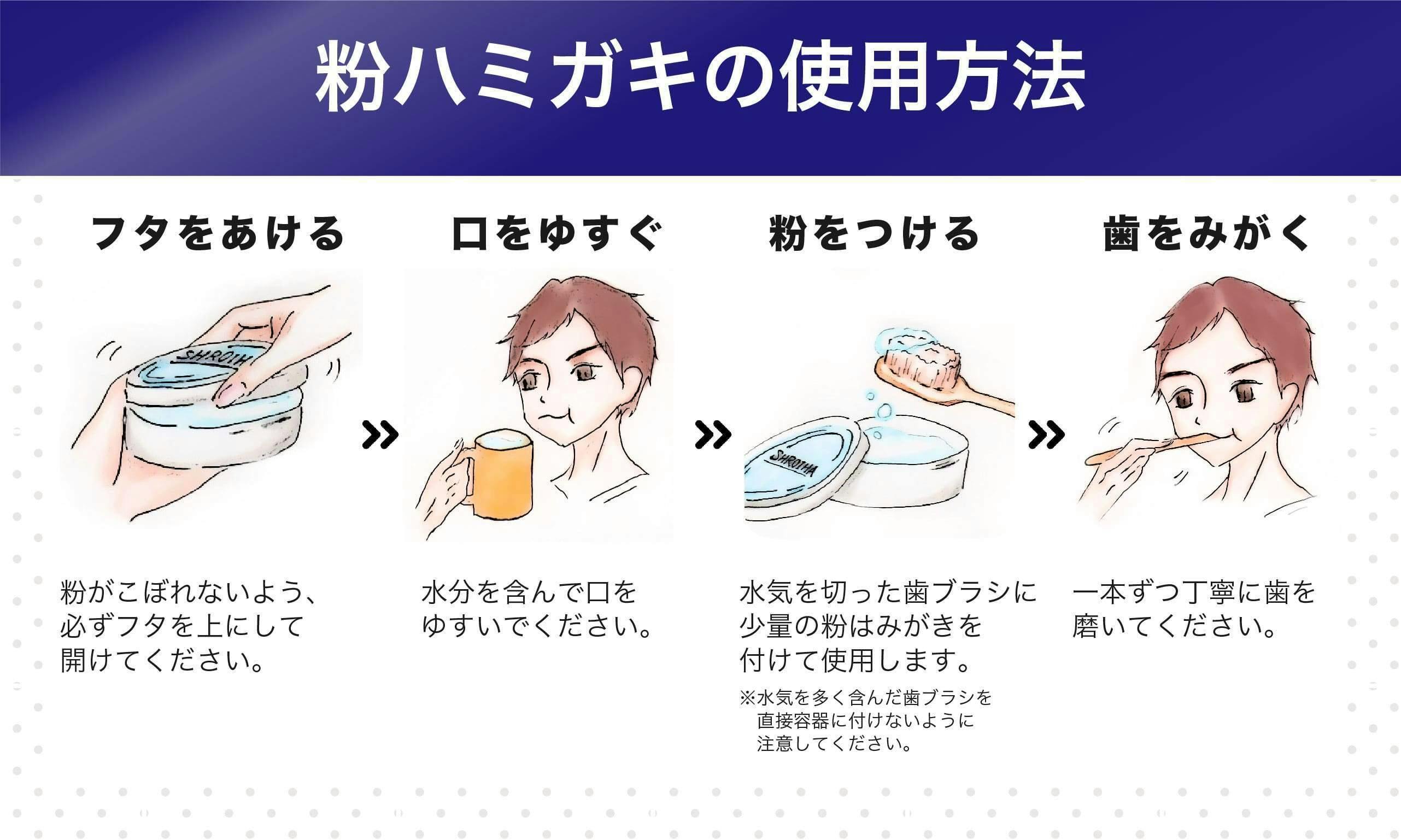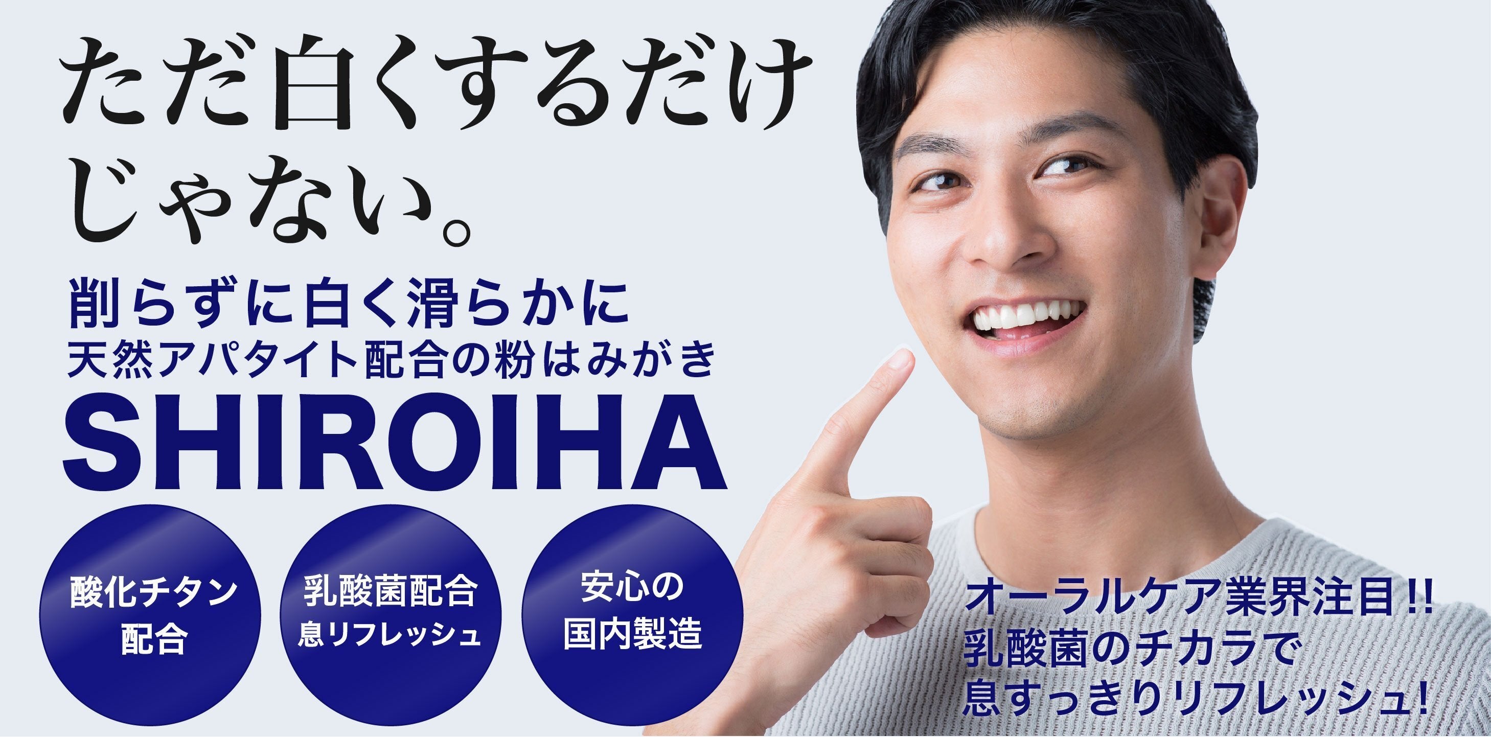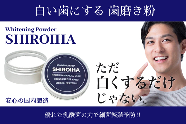 SHIROIHAは、歯の黄ばみや着色汚れが気になる方、今より歯を白くしたい方にお勧めのホワイトニングパウダー(歯みがき粉)です。