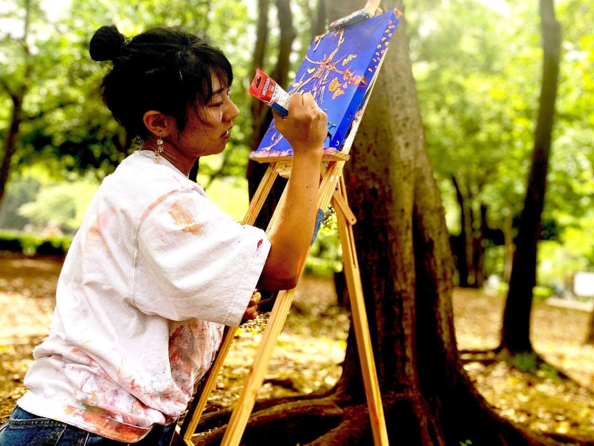ライブペインティングデビューから次々とお声かけをいただき、虎ノ門ヒルズや作家の養老孟司さんが所有されている「養老の森」というとても大きな場所でパフォーマンスをさせていただくことができました。