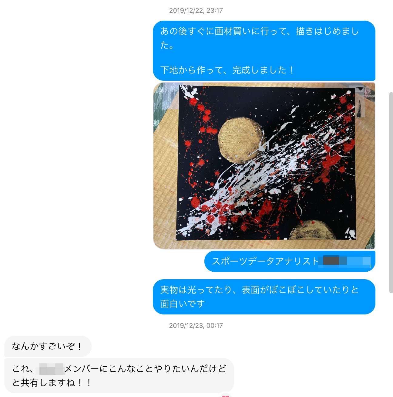 絵画は私にとって、人と話ができるようになったツールでもあります。人と話をするのが苦手な私が絵画を通じて人と本質的な部分で繋がれたような気がしました。