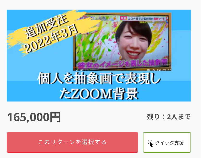 ●対価以外に必要な費用:プロジェクトページ、リターンに記載のとおり。