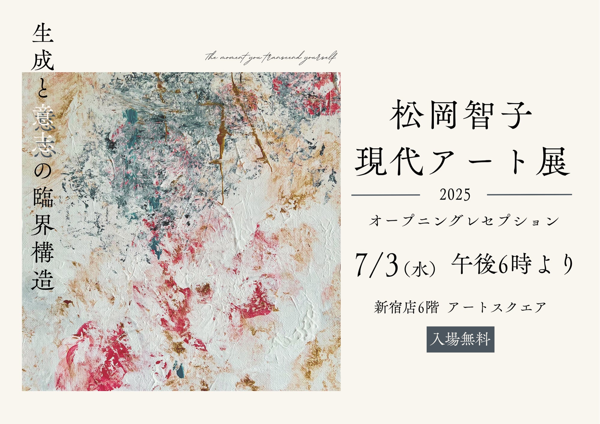 松岡智子 5周年記念個展「あなたにどうしてもなまえをつけなければ」「あなた」になまえをつける術を、私はまだ持たない。けれど、その存在を私ははっきりと体感しています。 そして、その「あなた」をより良くしようとして、その正体を知ろうとして、探究をやめることができない私がいるのです。レセプションパーティへのご参加はこちらから「あなた」とは何か「あなた」とは、何かを目にした瞬間に誘発される、名付けようのない感情の擬人化です。 美しい、悲しげである、朗らかである――。 単一の言葉では決して括ることのできない、矛盾した感情たちの集合体。 それはときに数ヶ月もの間、胸の奥に居座り続け、離れてくれません。この「あなた」は、あなたが向かいたい未来であり、この街の未来であり、 人類がこれから向かう先で抱く、未踏の感情そのものでもあります。私は「ナッジ(行動を誘発する仕掛け)」という言葉を大学生の頃、研究を続ける中で知りました。ドアノブがあれば、私たちはつい、それをひねり、扉を開けたくなる。 スマートフォンというドアノブを捻れば、私たちは自分の意思とは関係なく、コンテンツを消費するだけの身体へと変貌してしまいます。しかし、かつて私たちが遊び回った「庭」には、もっと自由で、もっと根源的な「ひねりたくなる何か」が溢れていました。 今回の5周年記念個展では、社会をより面白く、より良くするための「装置」として、かつての庭が持っていた機構の再構築を試みています。それは、効率や正解を求めるためのナッジではありません。 会場に点在する「ドアノブ」を捻り、あなたの内側に住まう、名付けられない「あなた」と出会うための実験場です。私たちが再び「生きた表現者」へと還るために。 「あなた」の新しい名前を探すための扉を、共に開けに来てください。【開催概要】会期: 2026年3月10日(火)〜 3月15日(日)時間: 11:30 〜 18:30(※最終日は16:00まで)会場: 日本橋 浜町 好文画廊 2階住所: 東京都中央区日本橋浜町2-24-1協賛:ペベオ・ジャポン株式会社【イベントスケジュール】3月10日(火) 17:00 〜レセプションパーティ 17:30 〜 ライブペイント3月11日(水) 14:46 〜 黙祷3月14日(土) 13:00 〜 ライブペイント