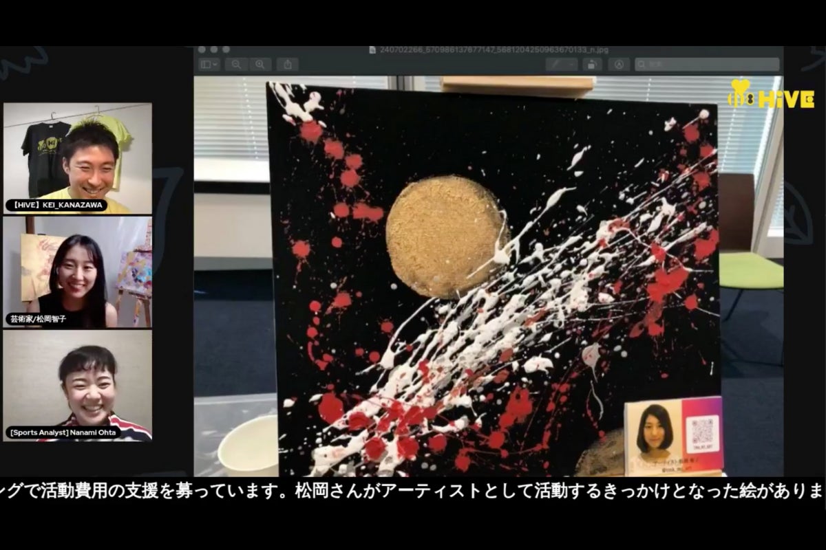 松岡さんがアーティストとして活動するきっかけとなった絵があります。それは、スポーツアナリストの太田奈々海さんをイメージして描いたもの。この1枚をきっかけに、HiVEでのライブペインティング、ZOOM背景画など、活躍の場を広げていくこととなりました。