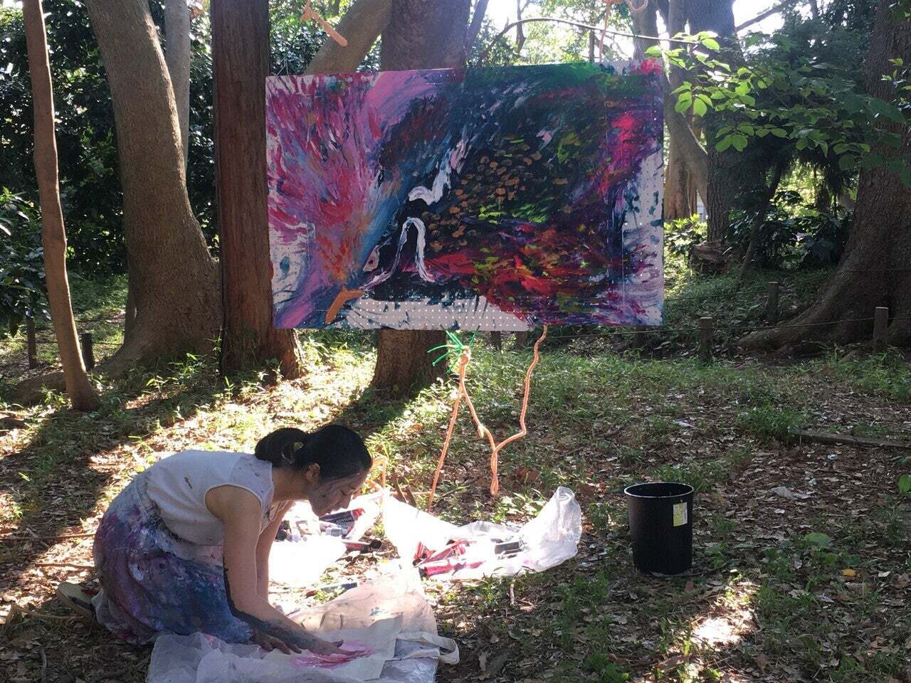 まだ僕がシェアハウスに住み始めてすぐの頃に「おっきい絵が描きたい!」と松岡さんが近所からコンパネを拾ってきて、急に手伝うことになったのを覚えてます。