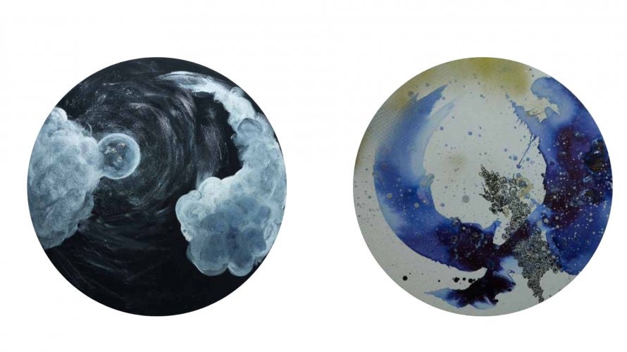 直径60cm、直径40cm アクリル・藍・銀墨汁/キャンバス 2021
