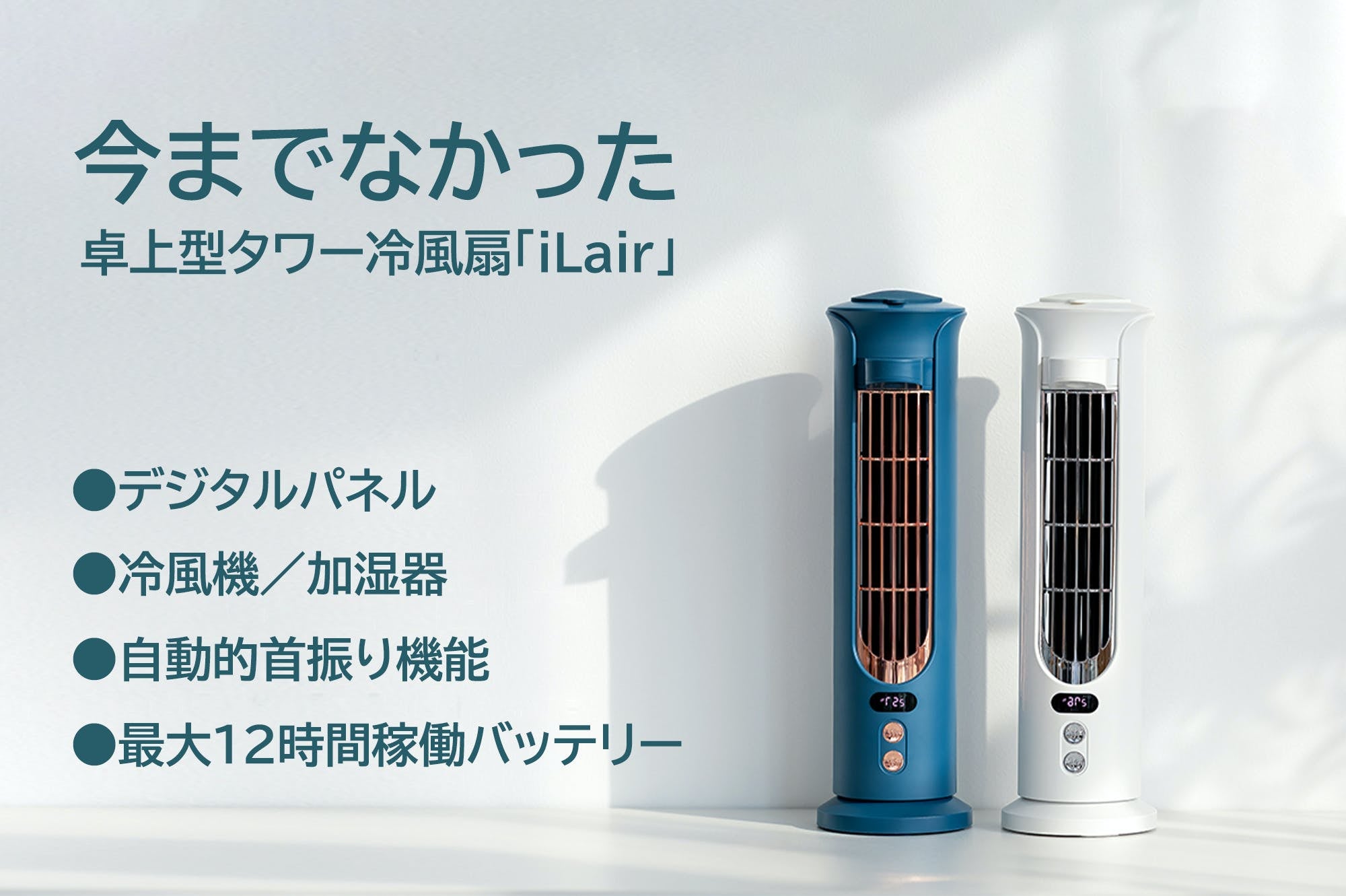 僅か720g、コードレス・超静音・卓上式・小型タワー冷風扇「iLair」