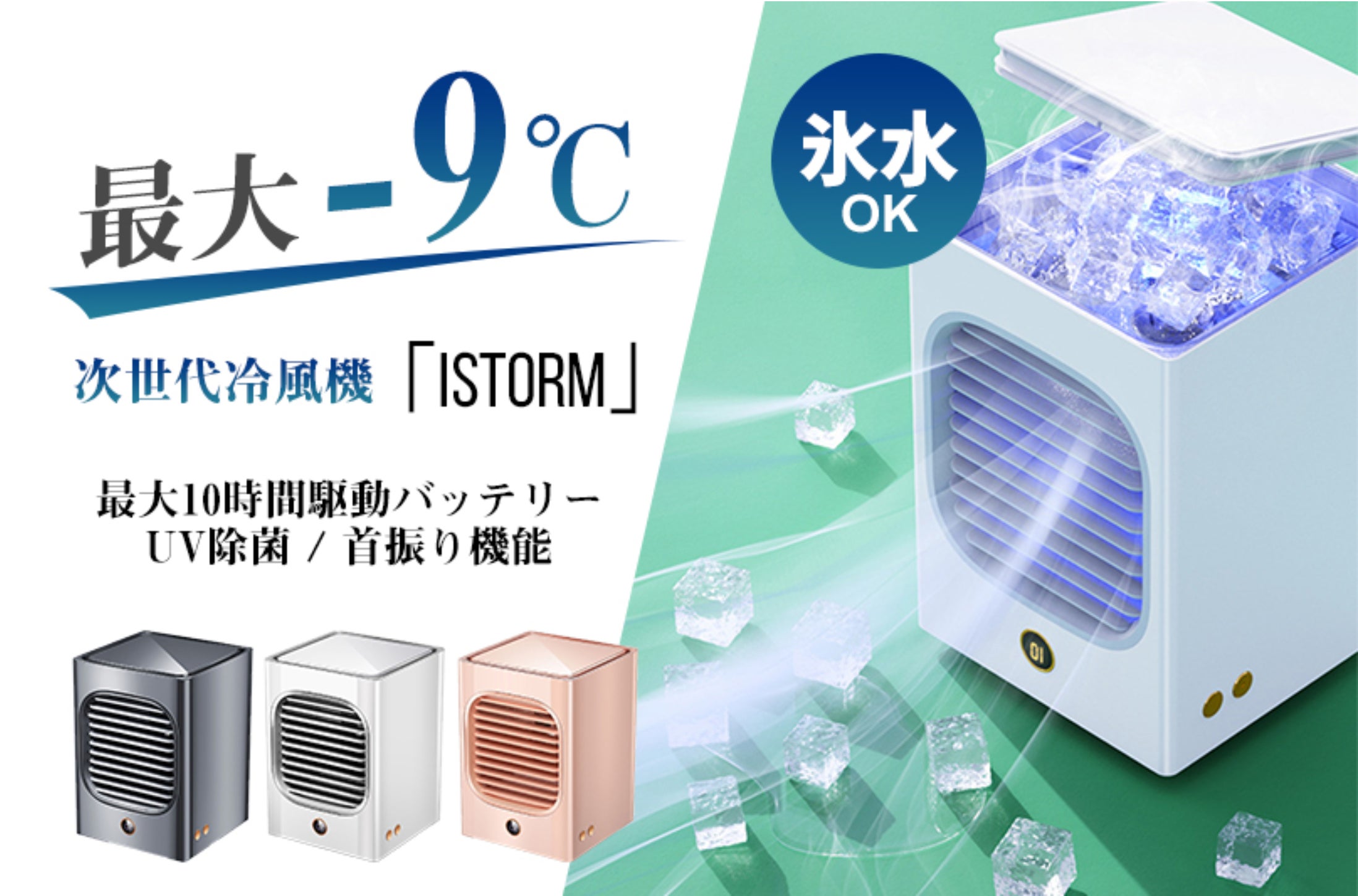 最大10時間コードレスで、持ち運びに便利な次世代超音波式冷風扇「ISTORM」