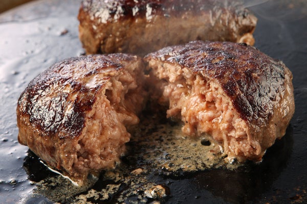 試行錯誤を繰り返し辿り着いた近江牛と国産豚の黄金比率で出来がった合挽ハンバーグです。
