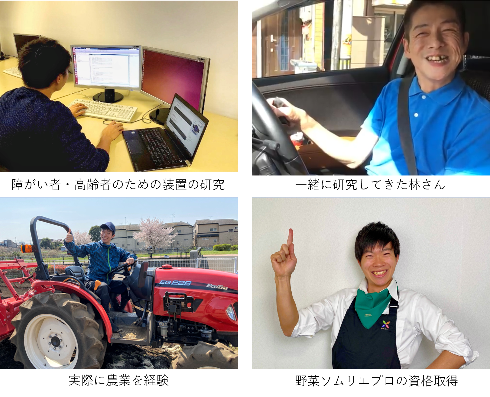 自分の母親の足が悪かったことや祖父母と暮らしていたこともあり、高専時代に福祉や高齢者のためのロボットに興味を持ちました。大学では実際に障がい者や高齢者を対象にしたロボットの研究をしていました。