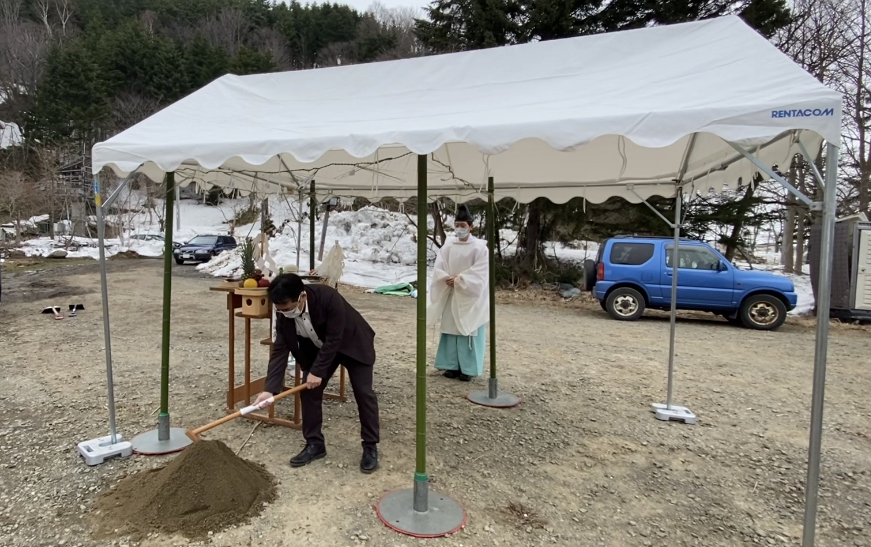 土地を守る神様にその土地を使用する許しを請い、工事の安全と、北海道ふくろう乃リゾート、当別町の繁栄を祈願いたしました。