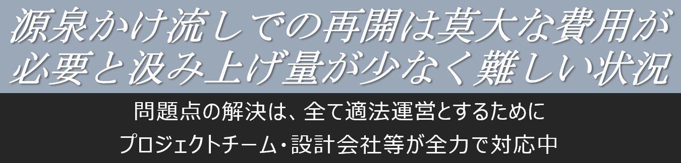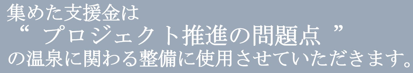 この問題点の解決の為には皆様からの御支援が必要な状況となっております。しかし、全ての問題を解決したとしても汲み上げ量の問題から毎日かけ流し温泉での提供は厳しい状況となっております。