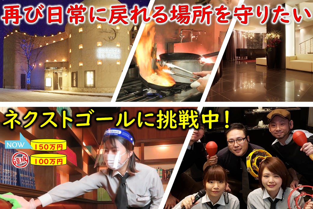 2021/06/03 10:54お陰様で目標金額の100万円を達成し、現在ネクストゴール150万円に挑戦中です!現在、緊急事態措置に伴い、店舗は5/12~6/20まで休業状態となりました。すすきのエリア、飲食業態、カラオケ提供店を取り巻く環境は厳しさを増すばかりで、行政からの支援金だけでは固定費もままなりません。仕入れなどのお取引先、従業員の雇用、カラオケ文化を守る為、皆様からのご支援を大切に運営に生かさせて頂き、感染予防対策の為の店舗補修や感染防止策費用などに生かさせて頂きます。 もっと見る