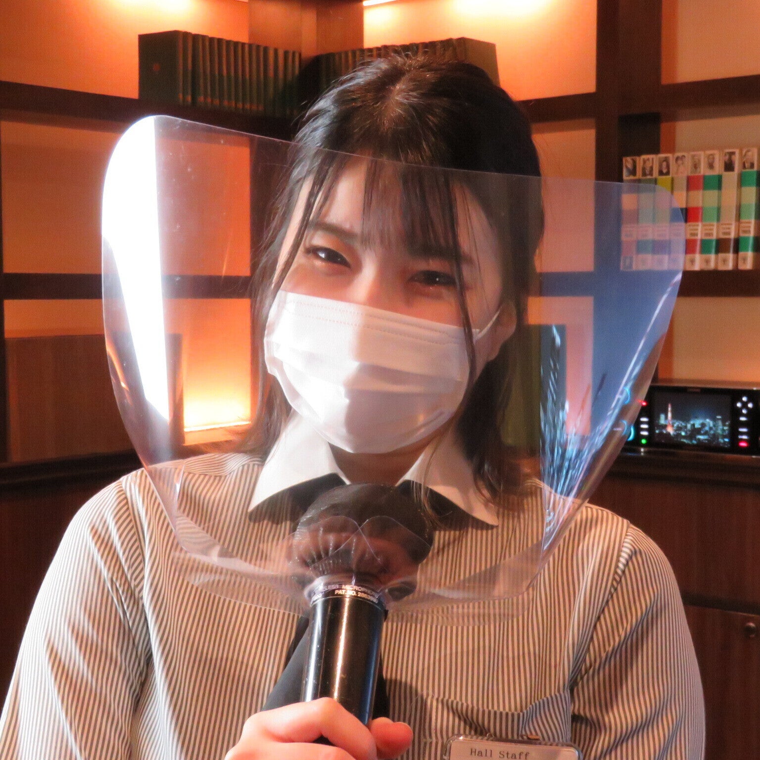 ・歌唱時にはマスク着用のお願いを徹底し、さらに飛沫を防ぐのに効果的な、「マイクとお顔を覆う透明マイクシールド」をご用意しております