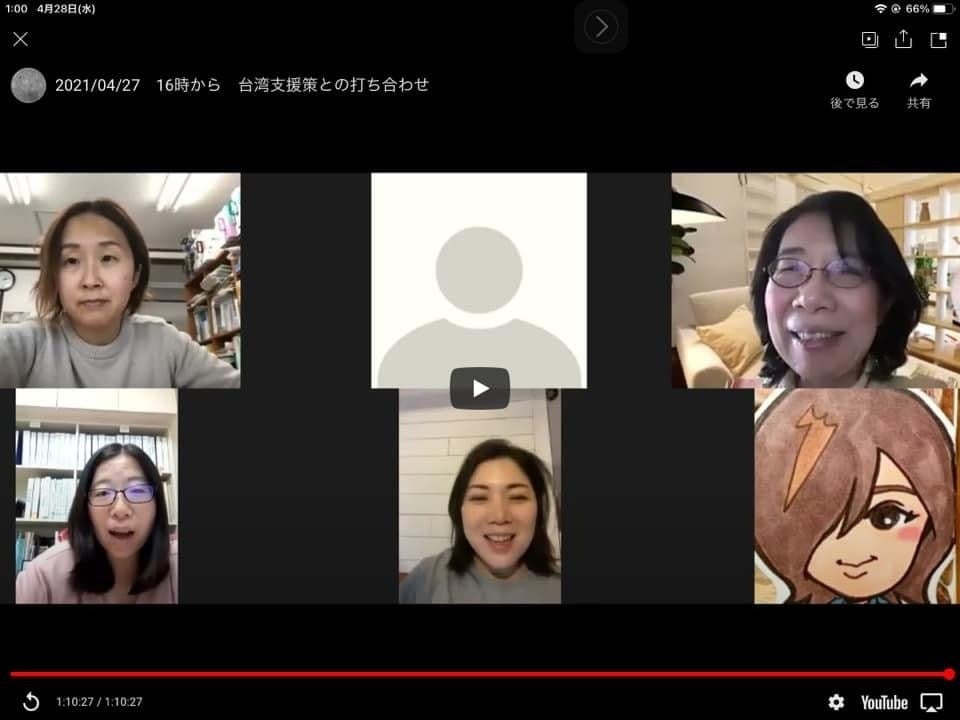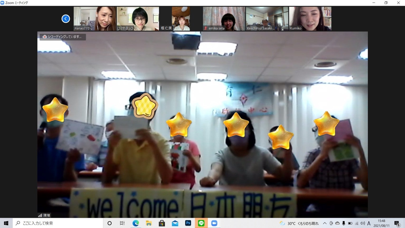 2021/08/13 09:00こんにちは!梅雨末期のような雨続きになりそうな心配な気候ですが、皆さんはいかがお過ごしでしょうか?私たちZUTTOMOでは、支援先施設の光仁会さんとオンライン交流の場を持ちました。これまでは、主に施設の担当者のクリスさんとやり取りしていましたが、今回は施設のお子さんや保護者の方たちとの交流でしたので、初めての直接(オンラインだけど)交流になります。しっかりとコミュニケーション取れるのか不安でしたが、画面に映った瞬間「Welcome 日本朋友」と書かれた文字が見えて、その心配は消えました(^^)そして一人一人自己紹介がありましたが、まぁ子どもたちの元気で賑やかなこと!クリスさんによると、ようやく施設も7/末より一部再開したようで、子どもたちは先生やお友だちみんなと逢えるのが嬉しくてたまらないのだそう。見ているこちらもとても嬉しくなりました。「日本のコロナの状況はどうですか?」とこちらの状況を心配してくださっていて、私たちの笑顔を見て、「元気そうで良かった」と言ってくださいました。今回オンラインに出席してくださったのは、18歳以上のお子さんたちでしたが、これから月に1回程度交流しながら、まずはお互いのことを知る取り組みをしていきたいと思います。私たちも、台湾ツアーを考えているので直接逢える日を楽しみにしているとお伝えさせていただきました。言葉はわかりませんが、通訳に入ってくださったお母さんとZUTTOMOメンバーになってくださったこれまたお母さんと、お2人いてくださるという状況で、とっても心強さを感じました。次回も楽しみです。 もっと見る