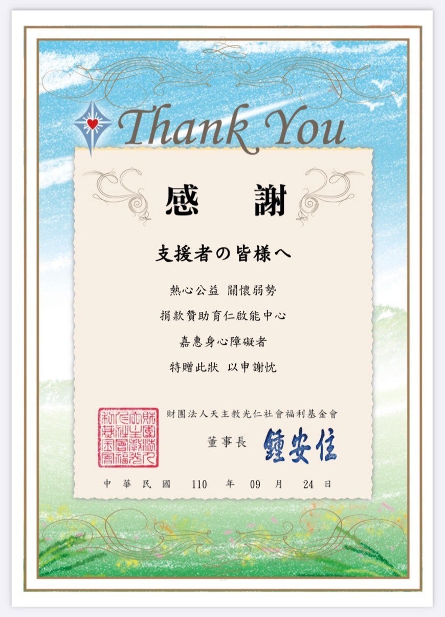 ささやかながら、障害者支援施設「光仁社會」からの御礼の手紙またはビデオレターをお送りさせていただきます。