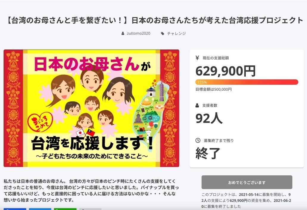 昨夜をもちまして、台湾応援プロジェクトへの募集は