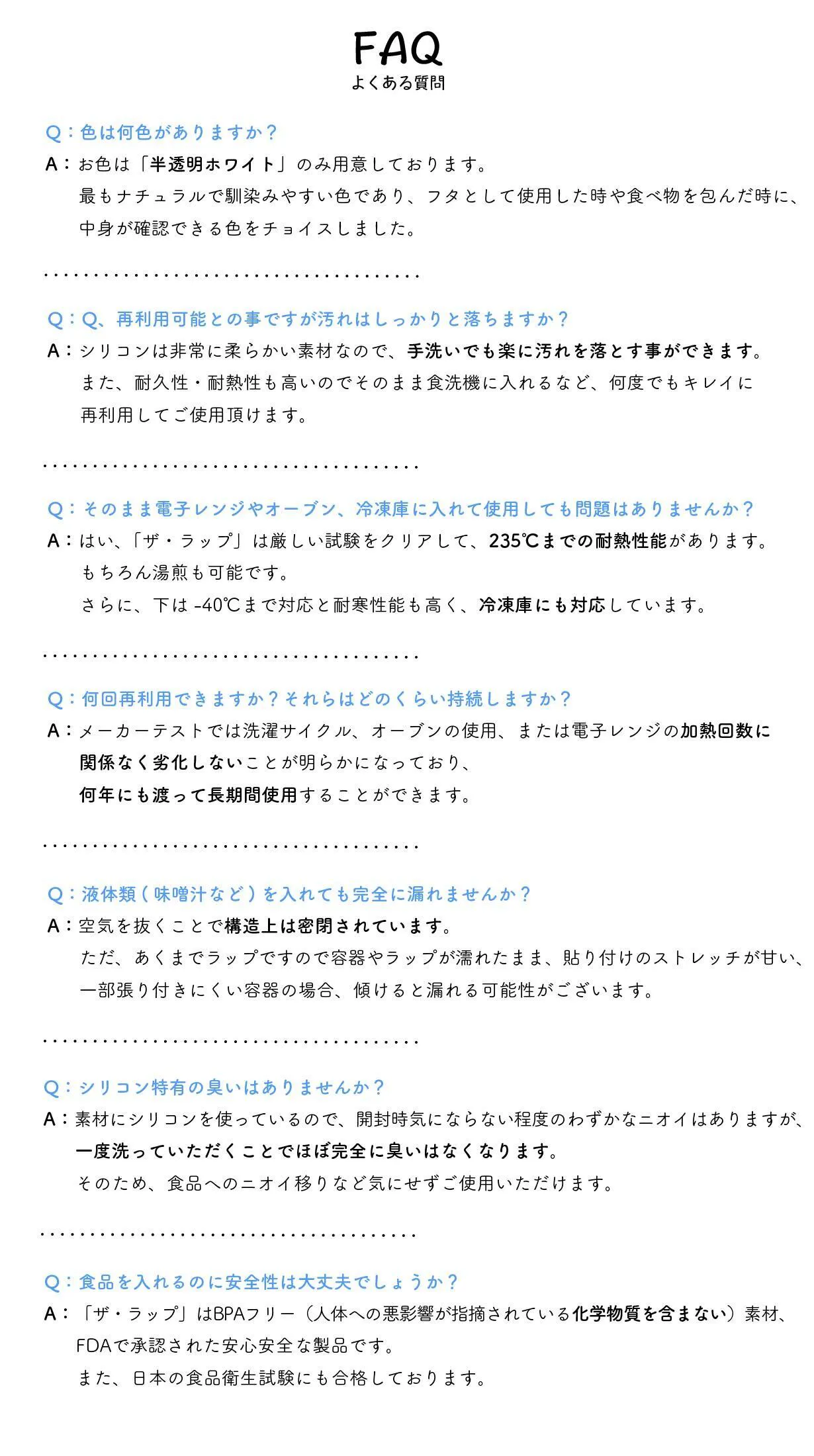 素材には高品質のシリコンが使われており耐久性に優れているので、洗って何度も繰り返し使うことができます。