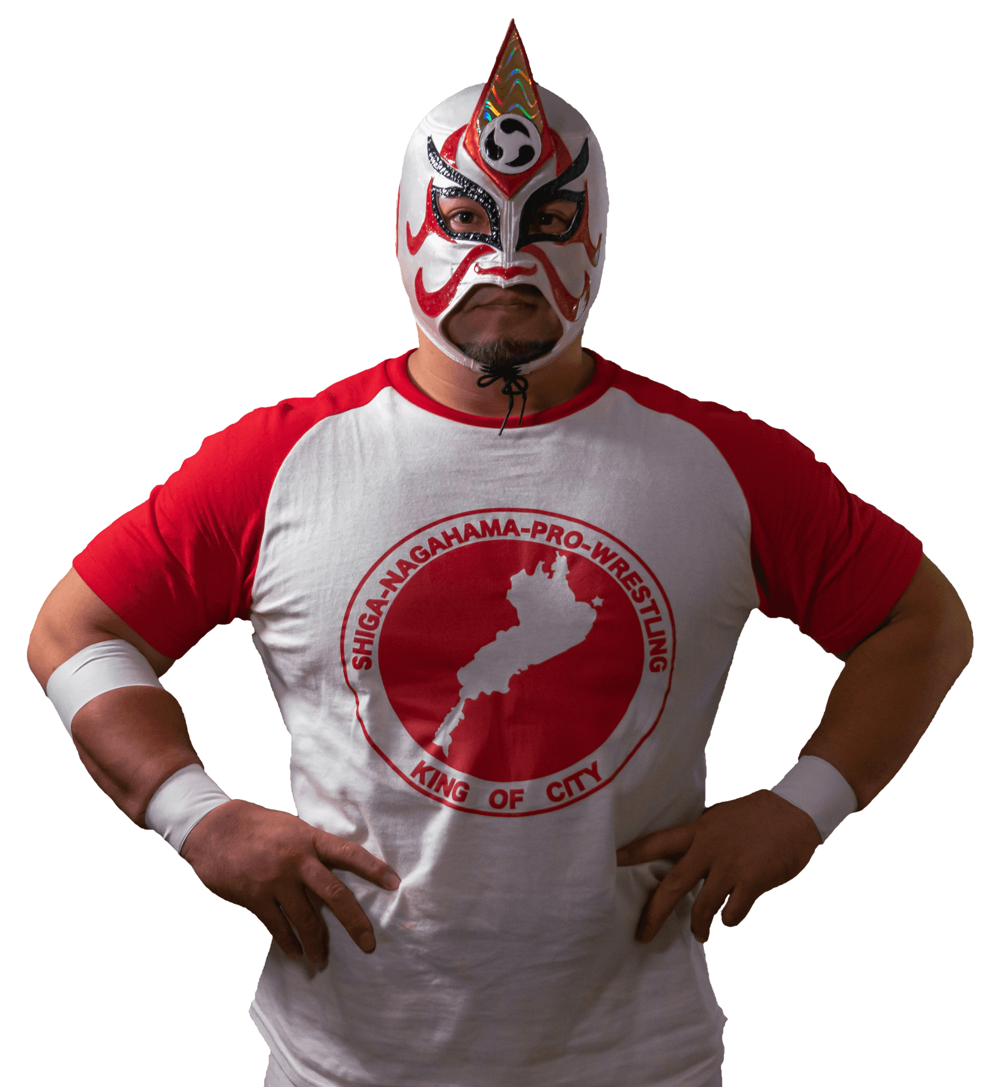 父親の影響でプロレスにのめり込みました。猪木が負けたら泣いていた小学時代。夢はプロレスラーでチャンピオン!しかし、当時は厳しい体格基準がありメジャー団体の試験は受けられず基準のない団体でプロレスラーとしての道を進みます。プロレスから離れることもありましたが『自分の大好きなプロレスを通して大好きな長浜を盛り上げたい!!』と決心し活動し始めました。