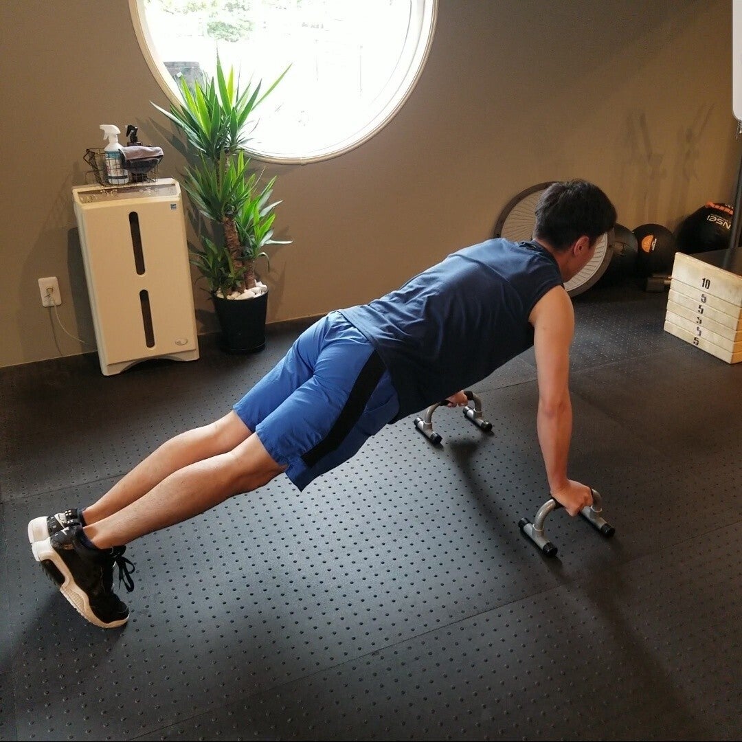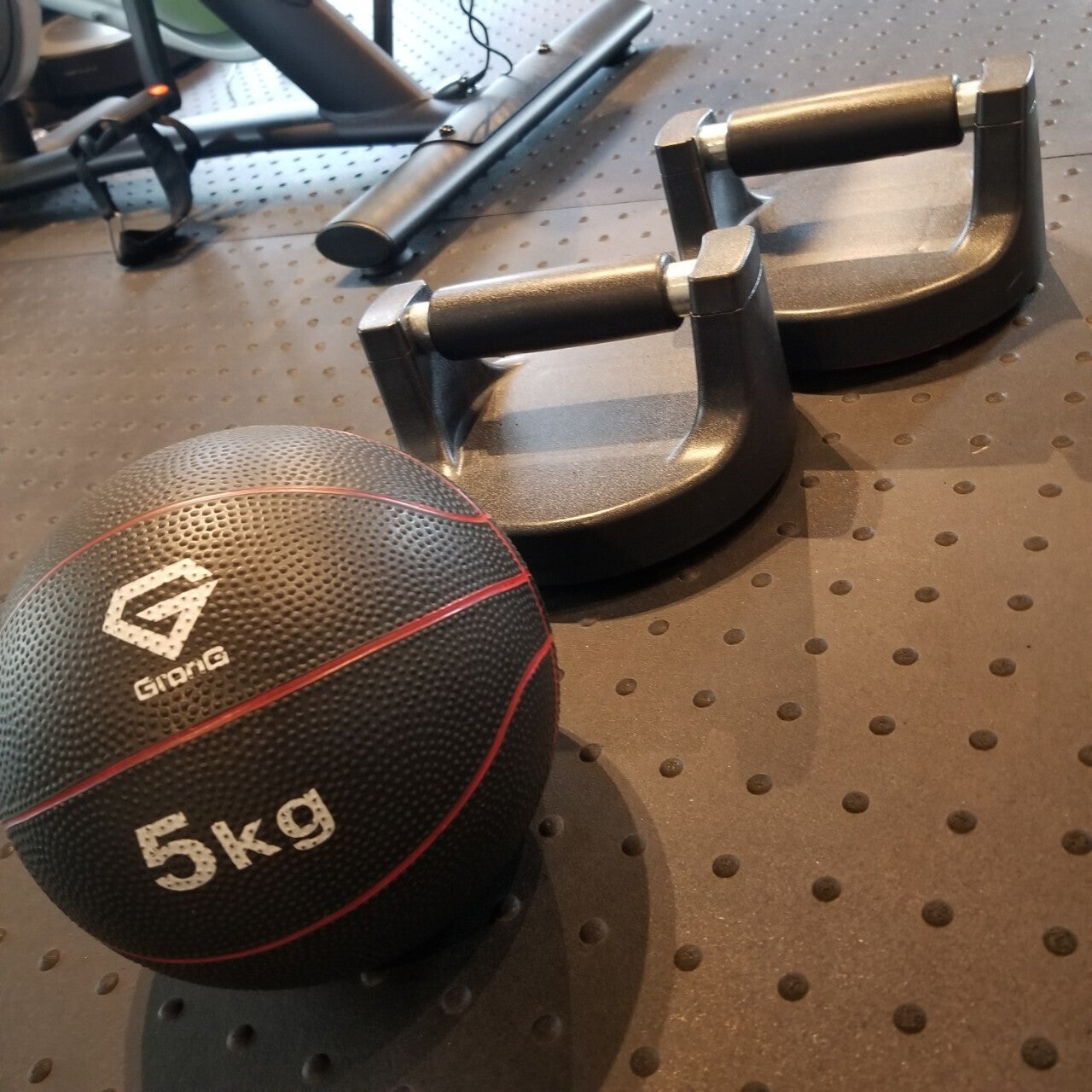 メディシンボール、可動式のプッシュアップバーなどを購入しました。これでエクササイズのバリエーションも広がります。