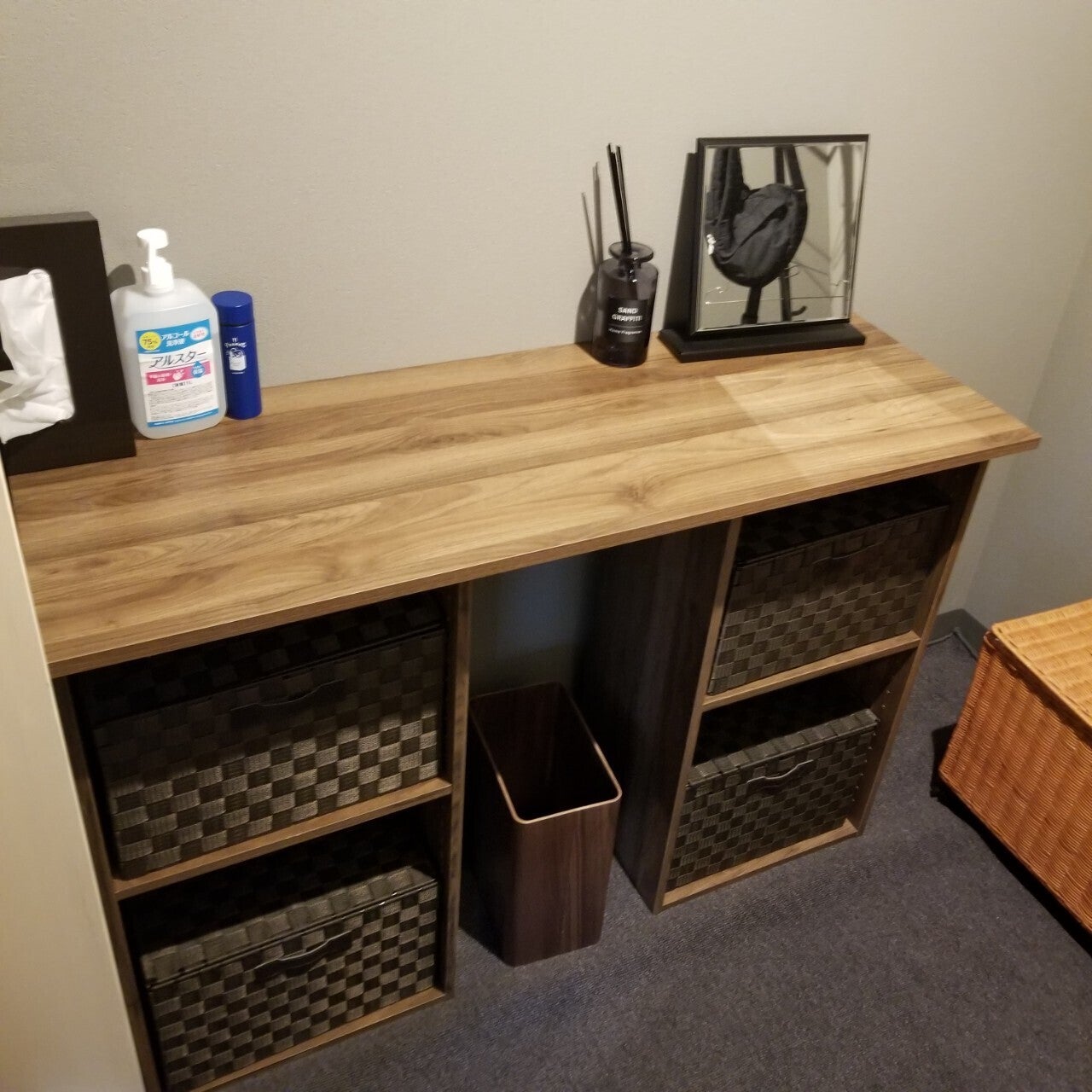 更衣室に着替えや荷物を収納できるラックを設置しました。