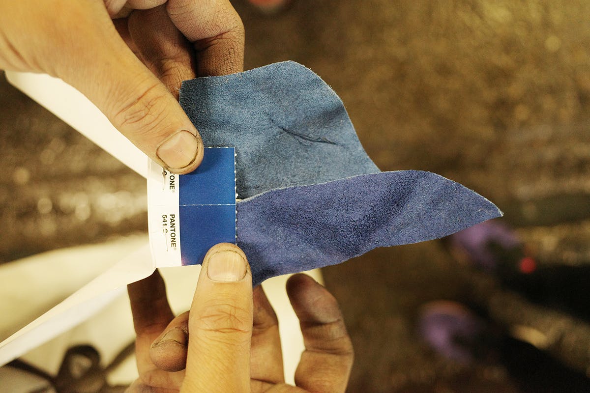 そんな話を聞きながら、僕たちは工場の中を見学しました。そのとき、ある不思議な革と出会います。普通の革よりも毛羽立っていて、ざらざらとした手触りをもつその革は、「床革」と呼ばれていました。