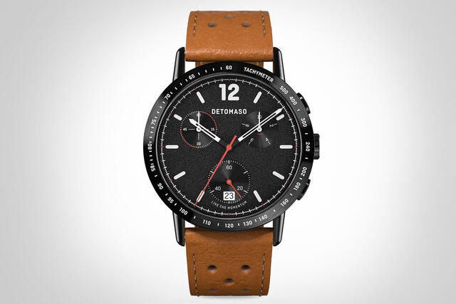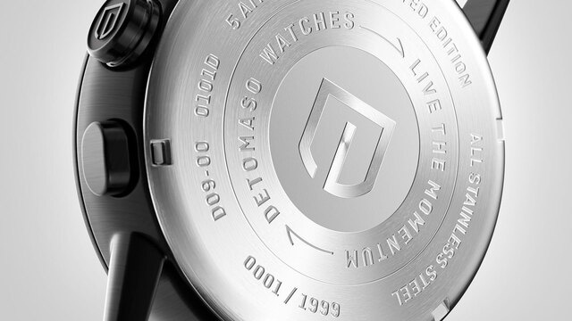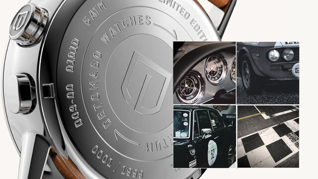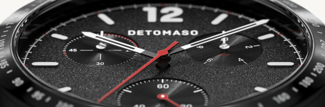 DETOMASOの全てのデザインは”ビンテージカー”と”イタリア車旅行”のコンセプトです。そして今回のDETOMASO ADESSOのコンセプトは"クラシックカーレース"というテーマが付け加えられました。秒を争うクロノグラフ機能備えた時計はクラッシックカーデザインに基づいています。イタリアデザイナーによる、少しレトロですが、バンパー、燃料キャップやスピードメーターからヒントを得たデザインになっているのです。