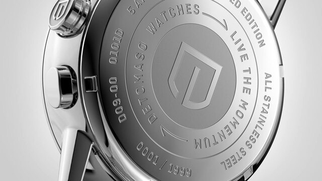 リミテッドエディションはDETOMASO ADESSO初回発売記念モデルとして世界限定1999個になります。DETOMASOのViaggioはグリーン文字盤とブルー文字盤、Sorpassoの中ではBlueブルーとBlackブラックが人気でした(日本を含め世界共通)。オーソドックスなWhiteホワイト文字盤を加え4種類(グリーン・ブルー・ブラック・ホワイト)各色70個づつ日本市場用におさえました。前回のリミテッドエディションではプロジェクト中に売り切れてしまったモデルもあります。この機会をお見逃しなく!リミテッドエディションには限定1999個内のナンバーリングが刻印されています。