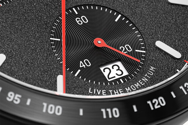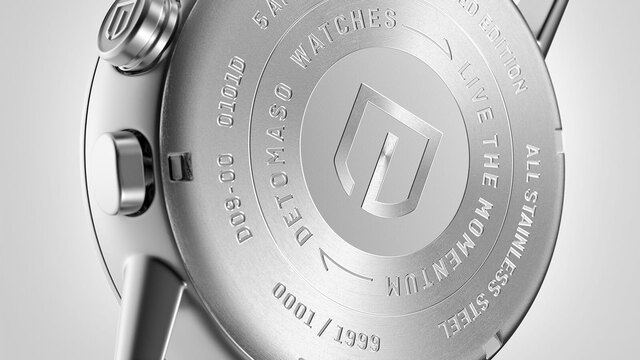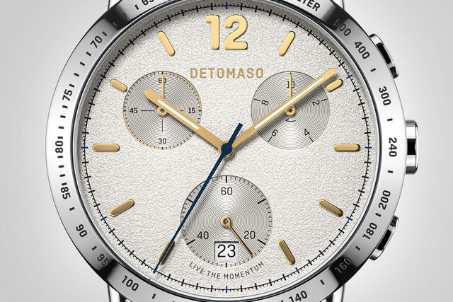 DETOMASOの時計文字盤には"LIVE THE MOMENTUM"と印字されています。デトマソの時計と供に、皆様の”人生に弾み”をつけるよう刺激(きっかけ)を与えられればという願いが込められています。