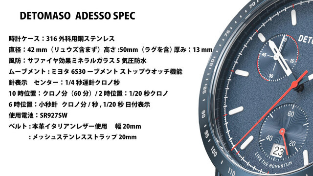 DETOMASO ADESSOクロノグラフ リミテッドエディション ブルー