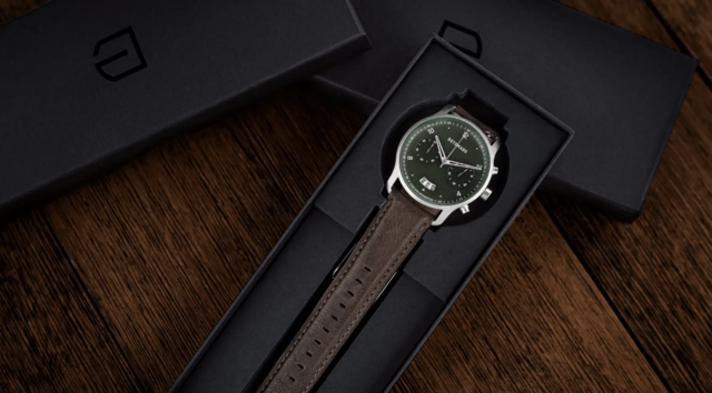 持続可能な時計づくりというコンセプトは雇用や体制づくりに留まらず、素材選びに於いても、革ベルトにだけではなく、パッケージでも生かされています。イタリアで創られプラスティックを一切使わず紙とダンボールを使用しています。プラスティック製であれば加工も楽ですし、コストも抑える事ができます。ただの紙貼り箱ではなく、デザインや箱の設計にもイタリアの職人技・ドイツの揺るぎないコンセプトが伺えます。