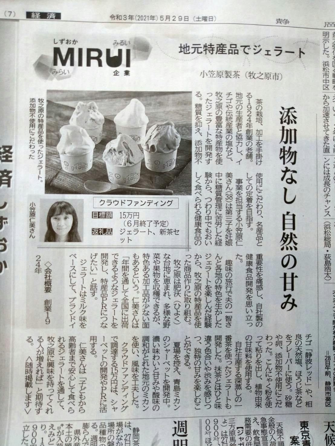さて、5月29日の静岡新聞の朝刊に、糖質オフジェラートの「g-Low's」について掲載をしていただきました!