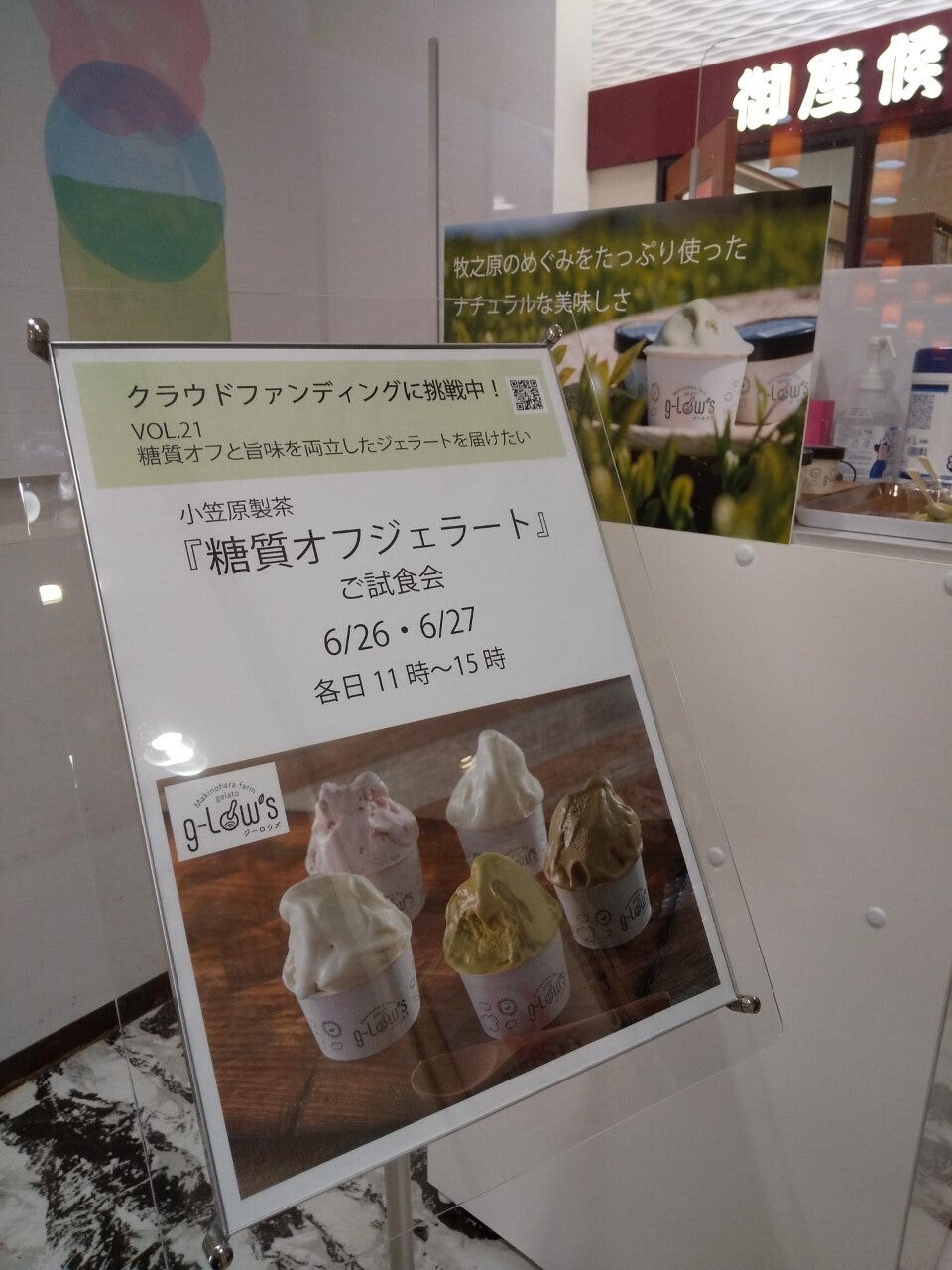 さて、昨日、一昨日の二日間、松坂屋静岡店様にて、糖質オフジェラート「g-Low's」の試食会を開催させていただきました。「私も糖質制限をしているよ」「私は牧之原出身だよ」など、お声を掛けていただき、とても嬉しかったです。また、直接、皆様のご意見やご感想を聞くことができ、とても勉強になりました。一つ、一つの貴重なご意見を次へ活かせるよう頑張ります!