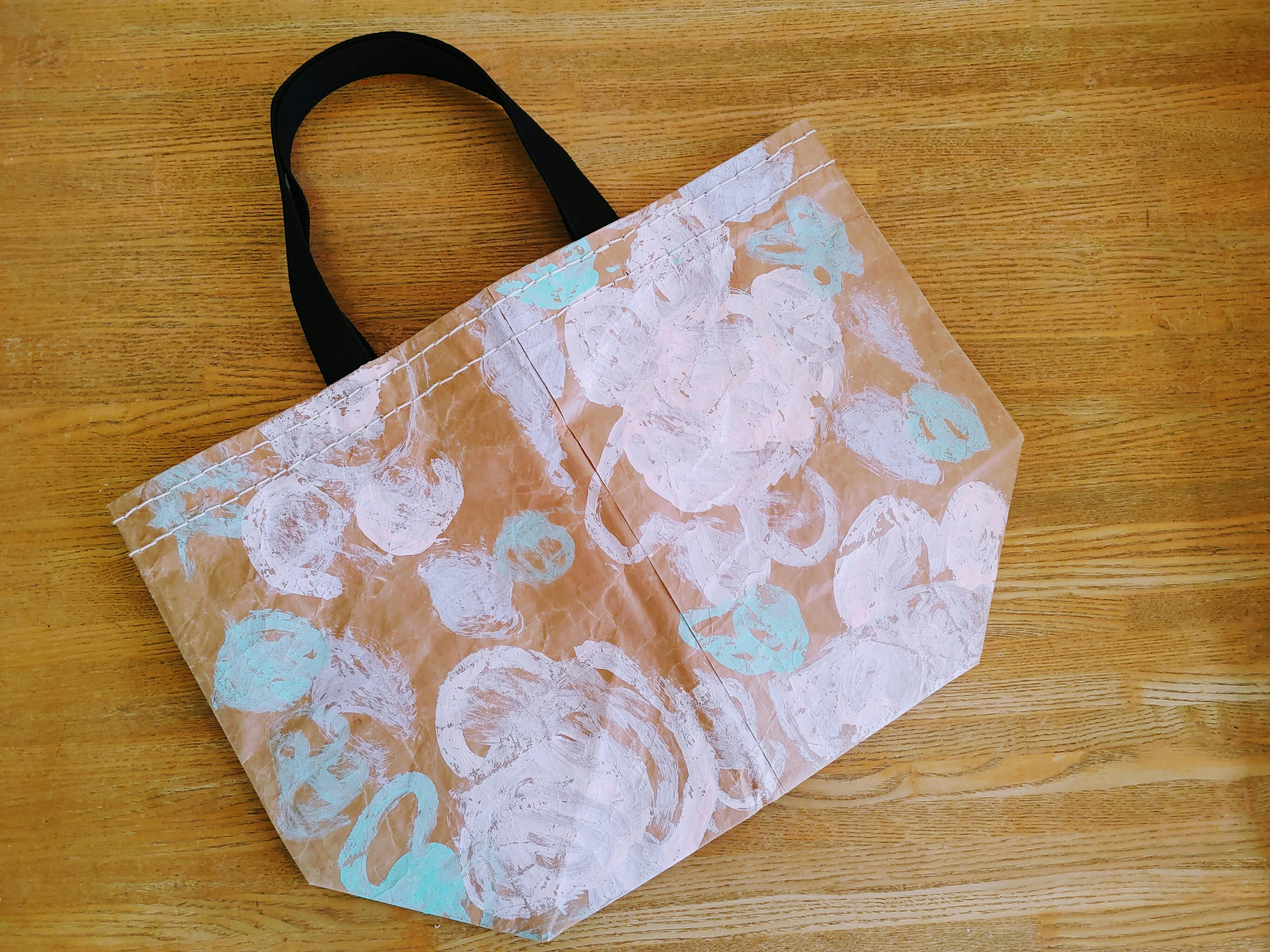 つむぐと『リメイクバッグ』は元々の食品袋が持つデザインの多様さを活かしたアップサイクル商品ですが、今回のクラウドファンディングでは、ご利用者が手縫いで縫製したバッグと身体に麻痺があるご利用者が描いたアートを組み合わせた商品をご用意しています。