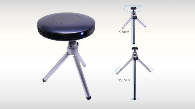 本体に取り付ける三脚は、プロジェクターが映像を写す角度を調整してくれます。