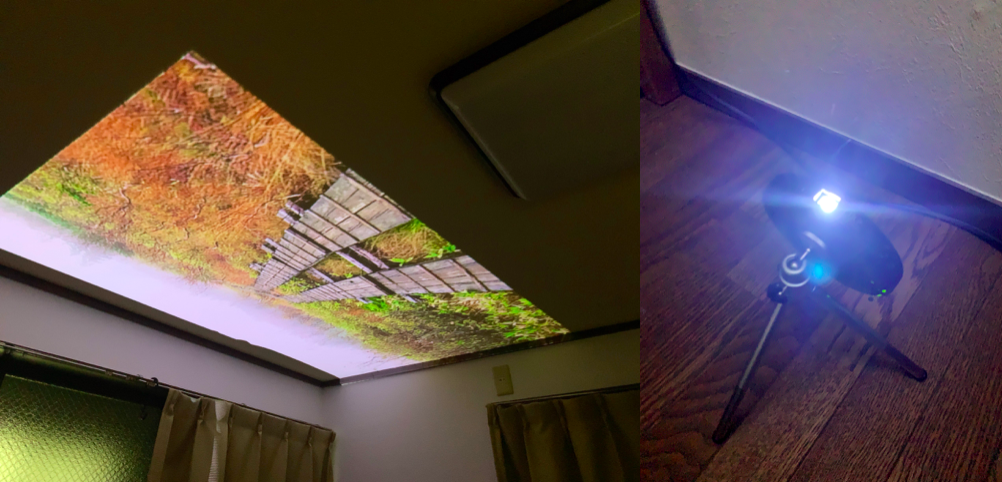 スマホの画面が120インチの大きなスクリーンに映し出され、まるで寝室が映画館の様に早変わりします。
