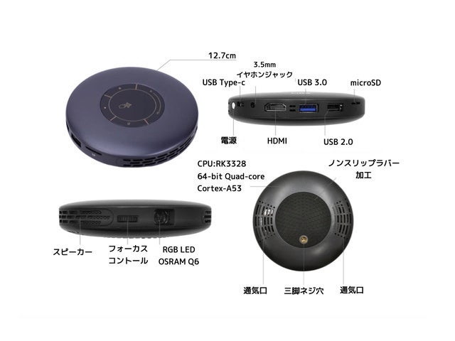 ●ユニバーサルインターフェース microSD(最大32GB)、HDMI1.4、USB2.0 、USB3.0、3.5mmイヤホンジャック、DC:5V/3A)