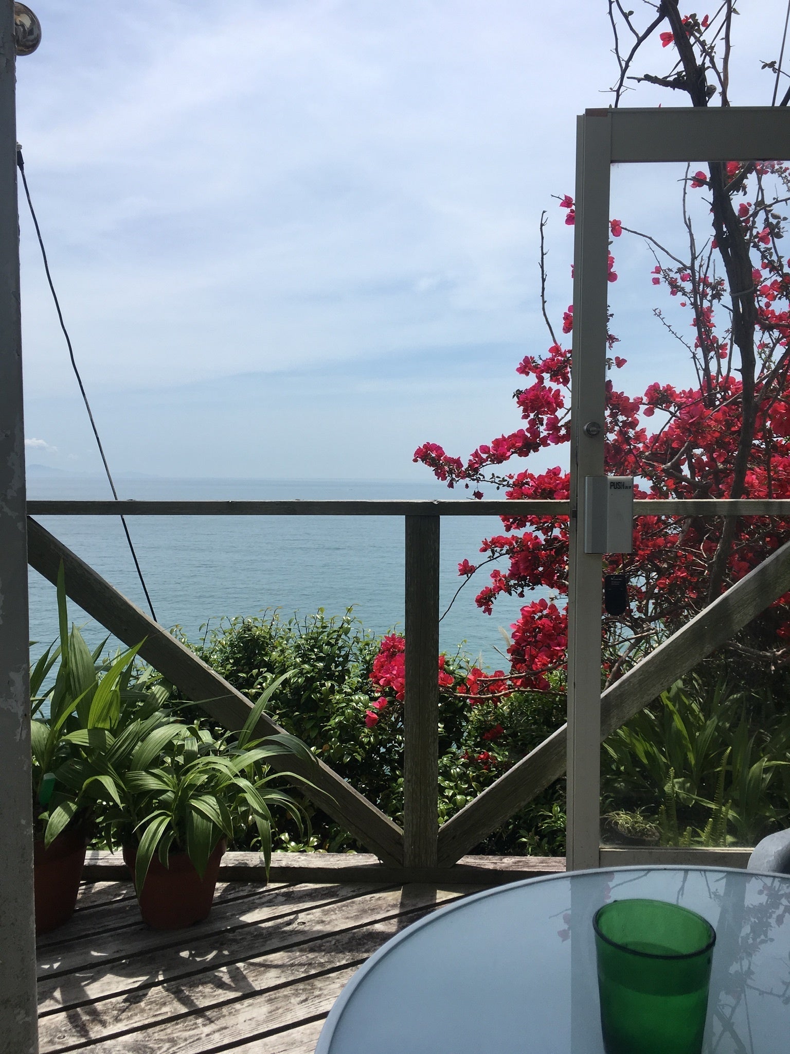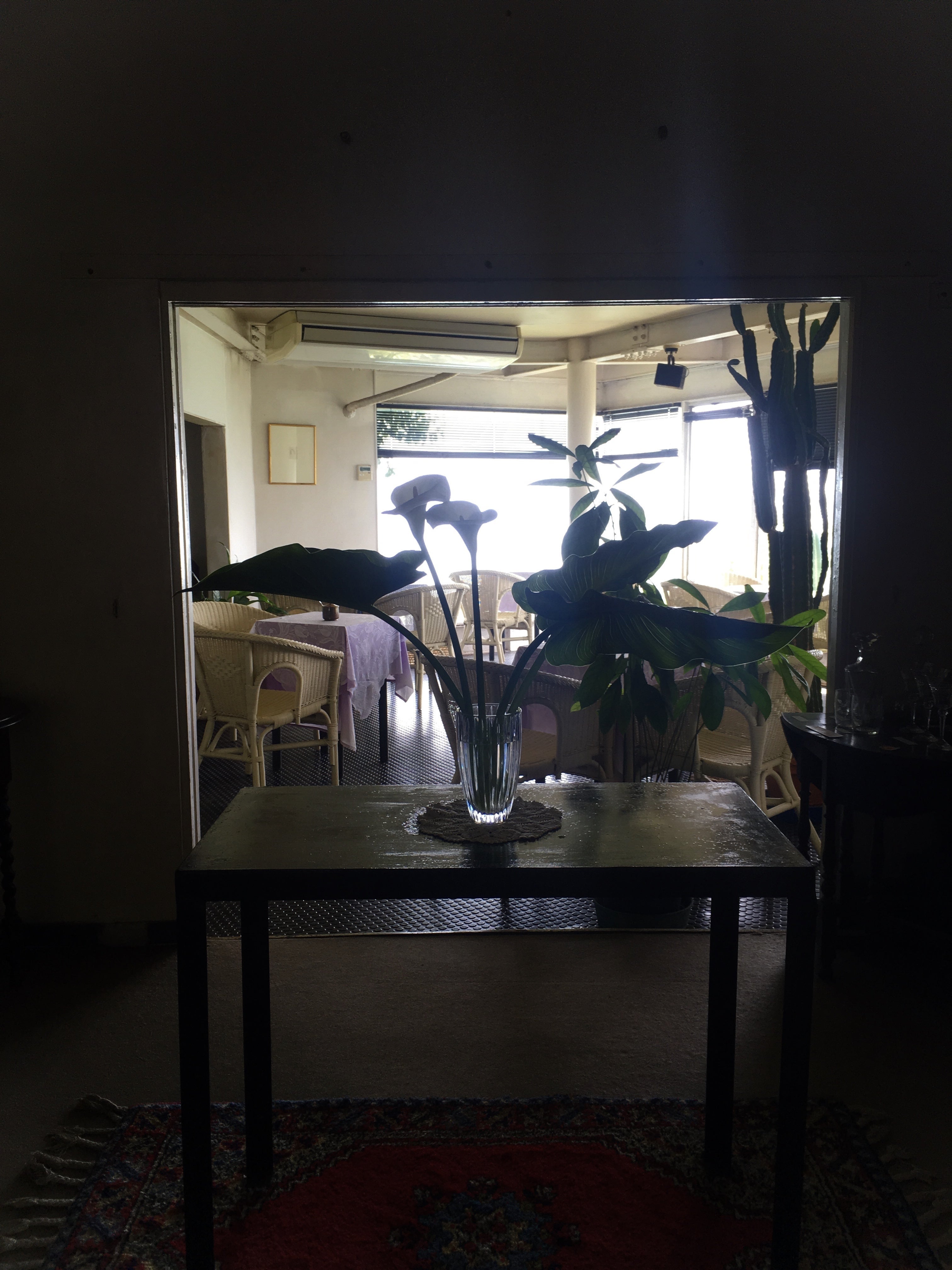 店内は無音でBGMは、海の音や鳥の声。庭で摘んだ季節の花や凄い絵画がサラッと飾られ、