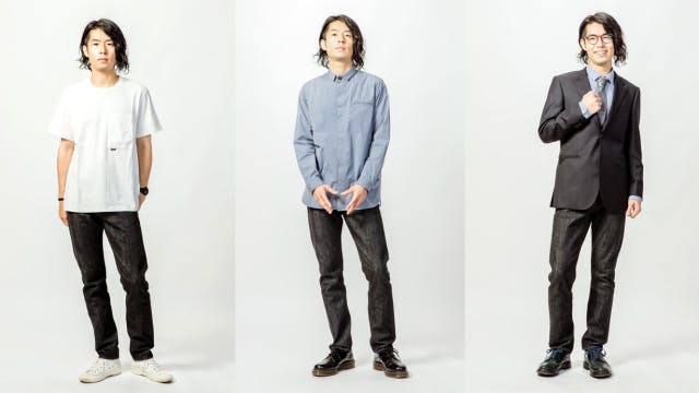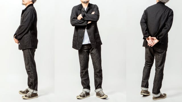 今回提案するブラックデニムはとてもコーディネートしやすく、フォーマルからカジュアルまで幅広く活用できる様、素材やシルエットに至るまでこだわって作り上げました。