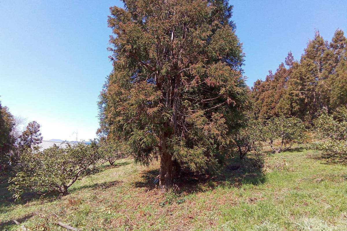 とは言うものの課題は山積しています。牧山みかんの畑はどこも水はけの良い傾斜地に造られているため、管理作業(草刈りや防除など)は、平たんな畑に比べて何倍も時間がかかります。しかも、4反の畑に植えられているみかんの樹は、植えてから40年以上経っていて、ほぼほぼ枯れている状況です。みかん畑として再生するためには、まず枯れかけているみかんや高くなり過ぎた杉の防風林を伐採するなど、新しく苗木を植えられるよう環境整備から始めないといけません。