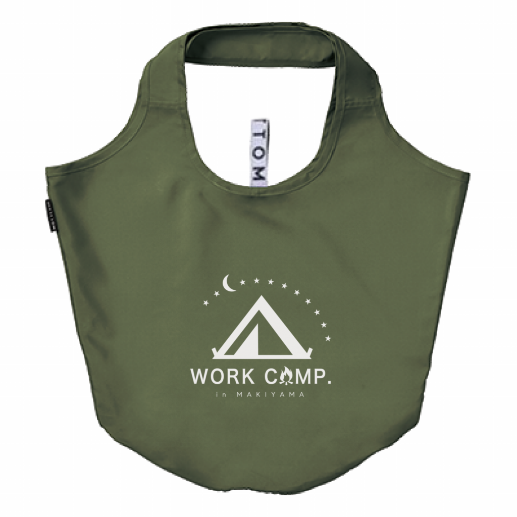「ワークキャンプ」オリジナルデザインが印刷されたマルシェバッグです。