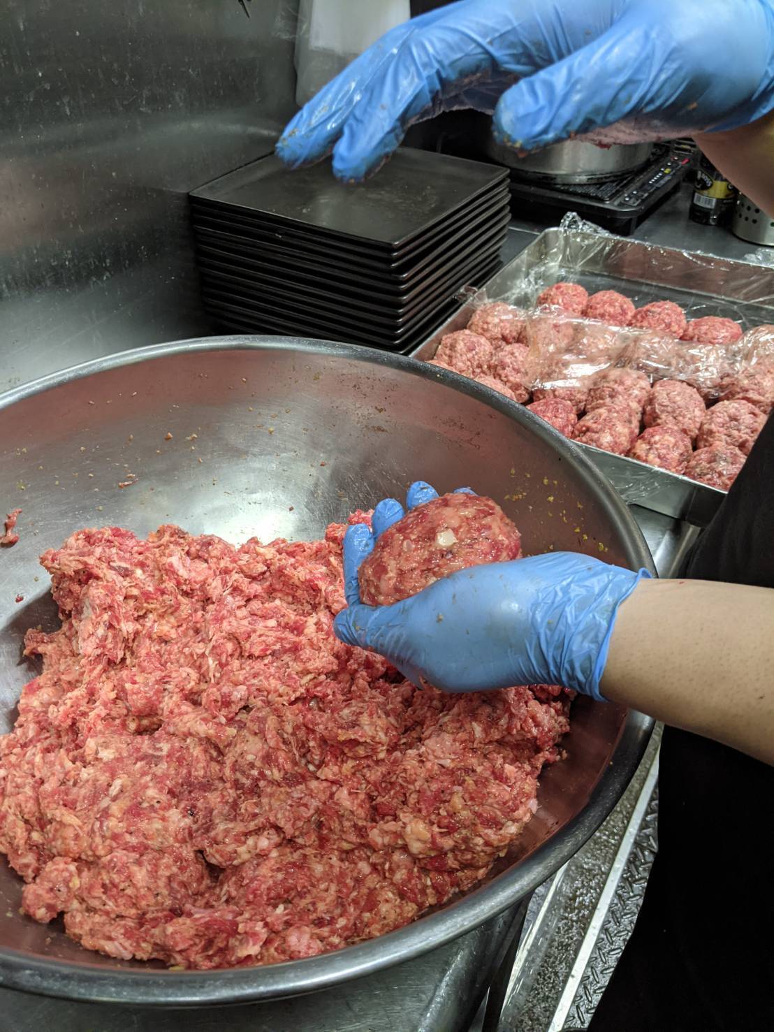 当店では、わざわざこの店のために、かなり粗めにカットしてもらったA4ランク以上の国産黒毛和牛のひき肉を使用しています。