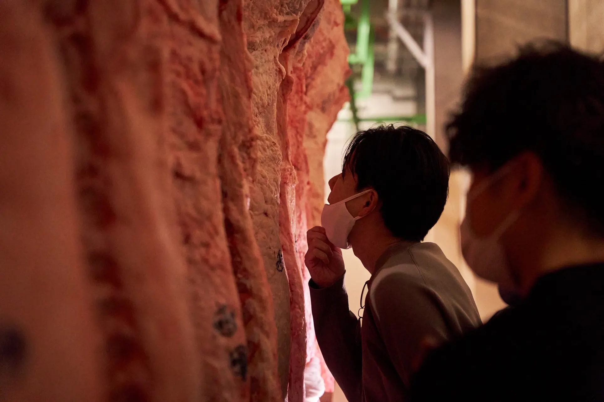 お肉の状態を確認するために、冷凍する前のお肉を丁寧にスライスした後