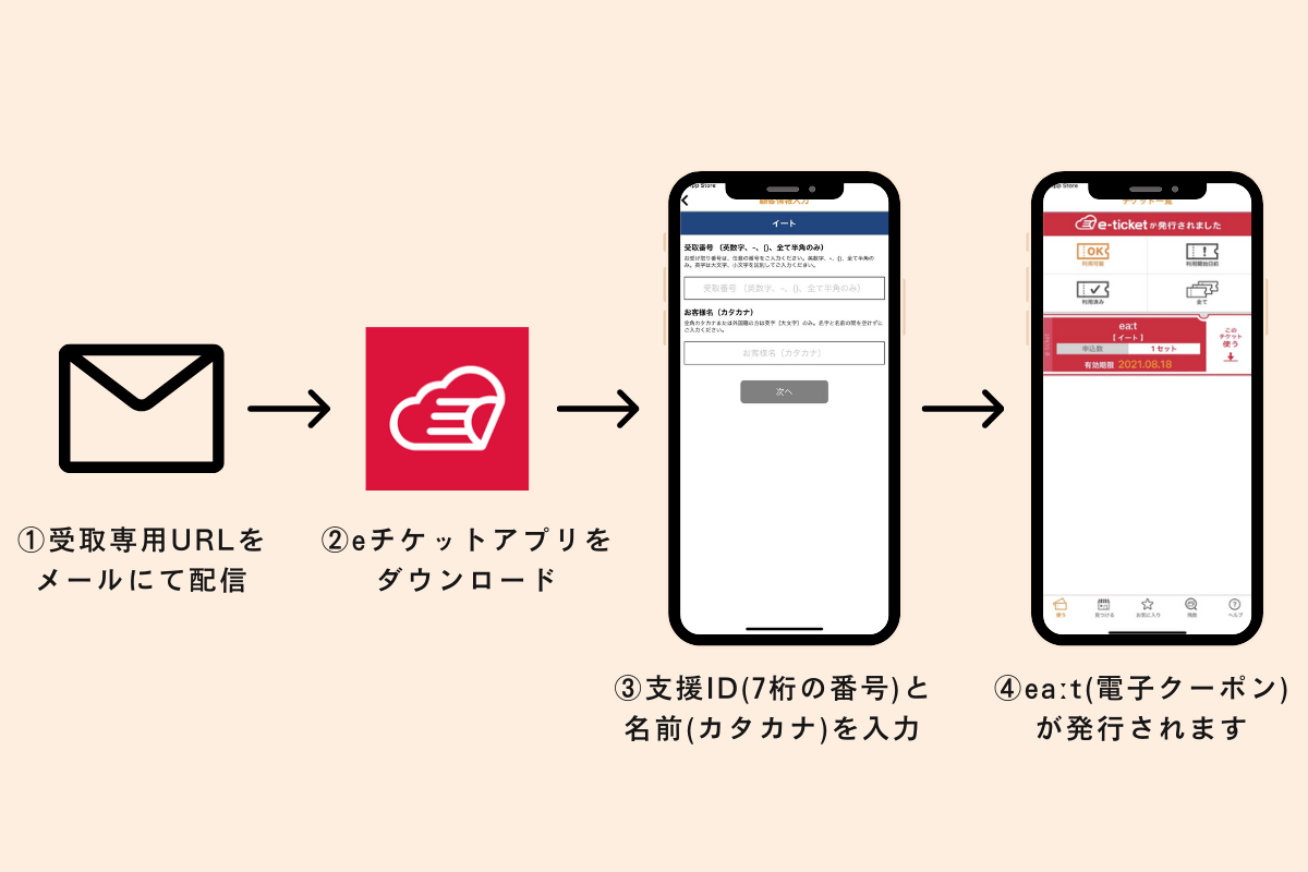 ※アプリをダウンロード後、支援ID(7桁の番号)と名前を入力してお受け取りください。