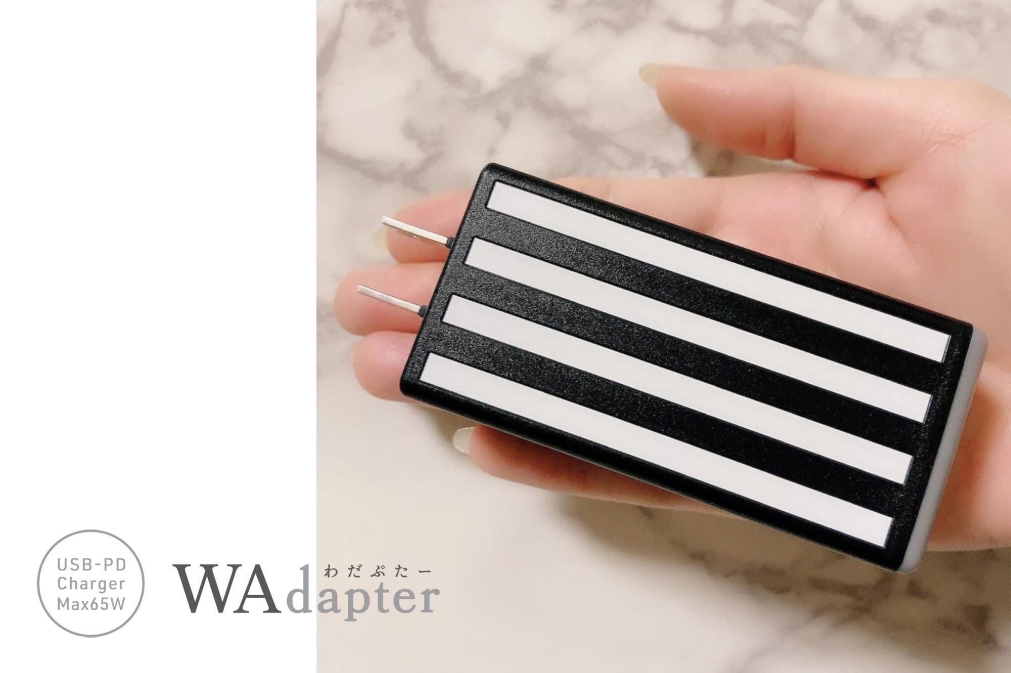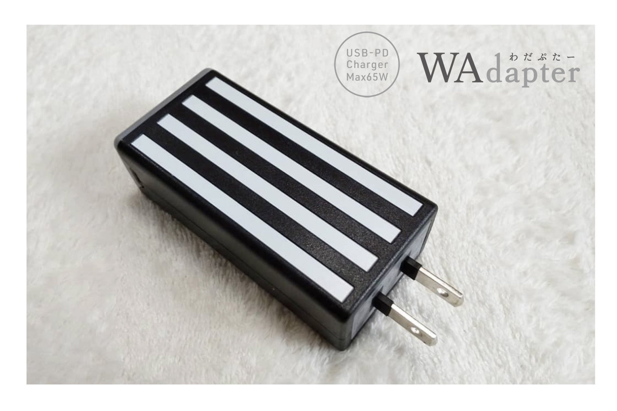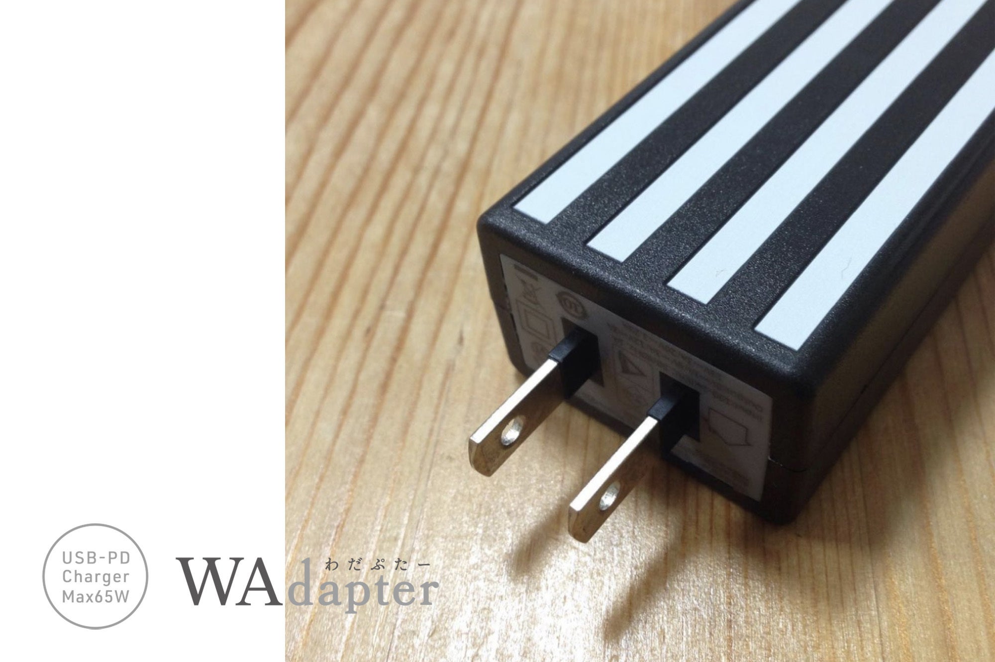 WAdapter(わだぷたー)は、USB Type-C(最大出力65W)かつ、USB PD(PowerDelivery)対応。