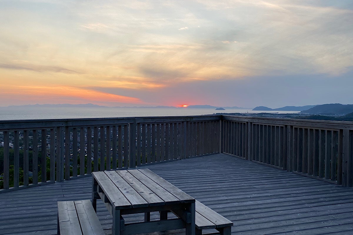 展望台からはいちき串木野市と東シナ海を一望することができ、天気の良い日は東シナ海に沈む夕陽を眺めることができます。