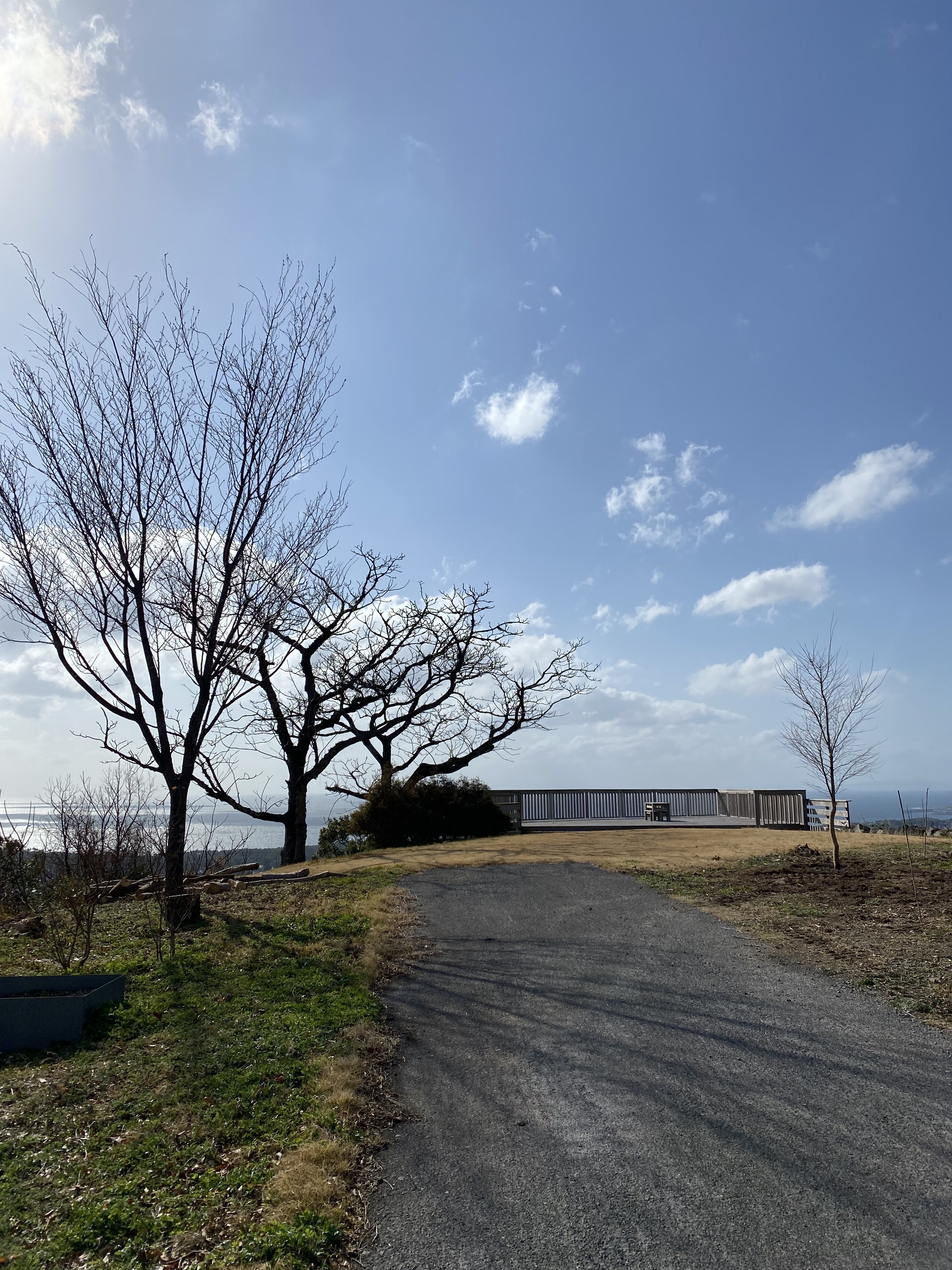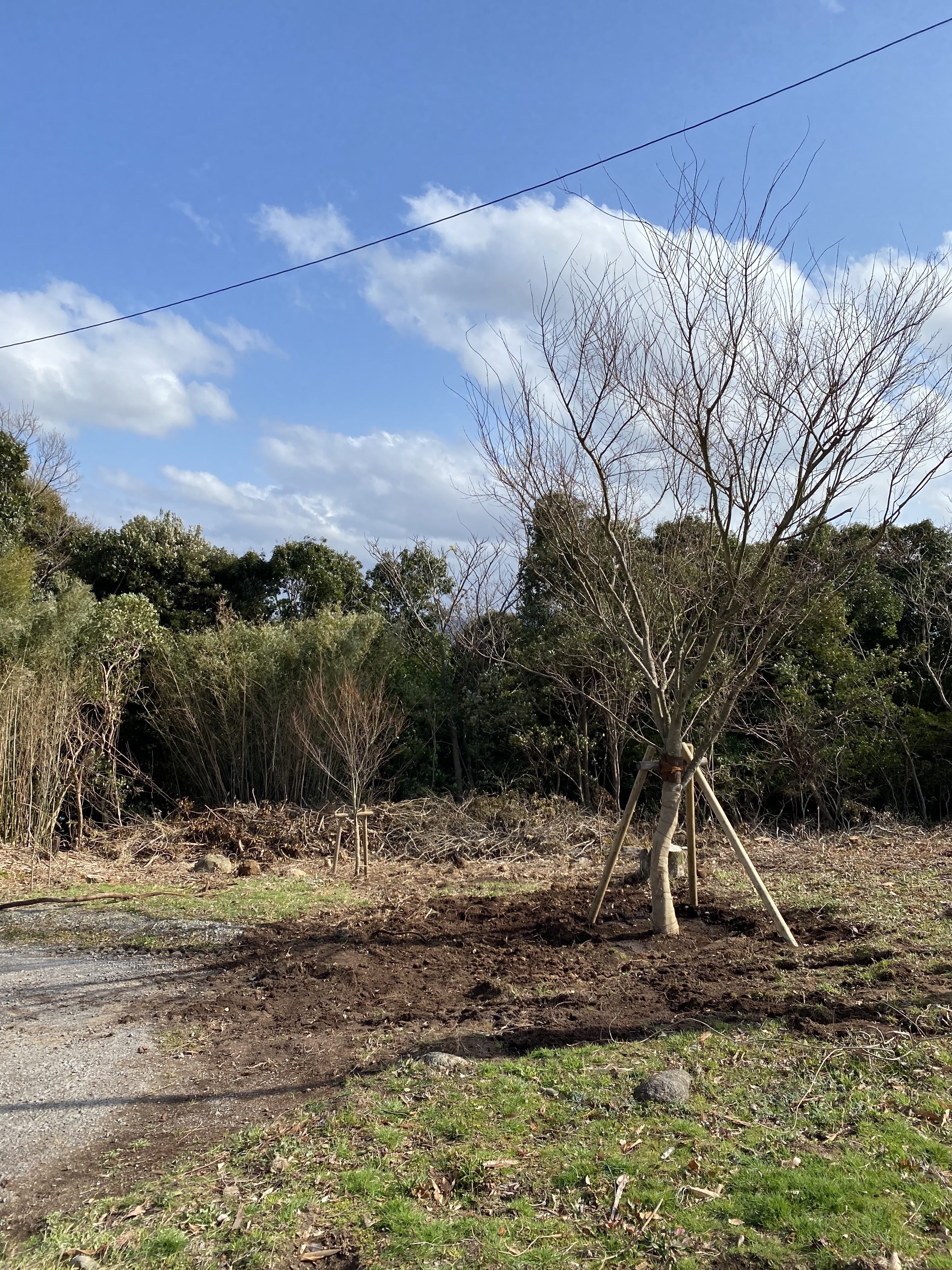 駐車場近くに5m、3mの紅葉を1本ずつ、展望台芝生の近くに3mの紅葉を1本植樹しました。
