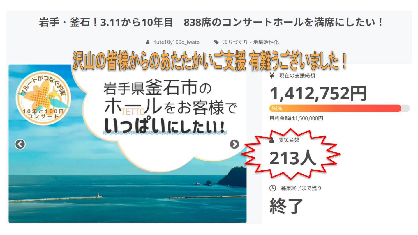 こんにちは!10年と100日コンサート実行委員会クラウドファンディング担当です。